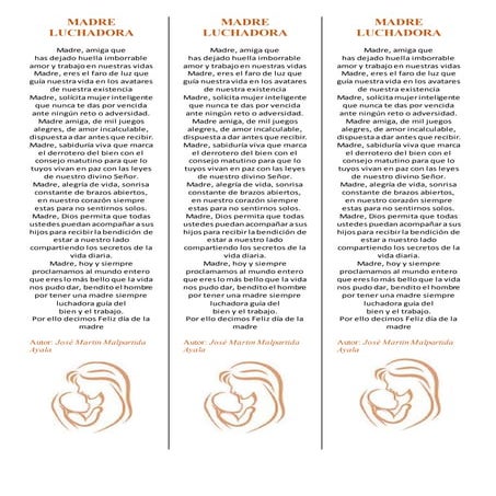 Las madres son símbolo de lucha por un mejor mañana son la pasión del mundo gracias. Como la tierra da vida y nutre así es el amor de las madres para sus hijos. MUJER LUCHADORA A ti que te hirieron los sentimientos te llenaron con falsas promesas ilusionada entregaste tu corazón fuiste sincera ante una hipocresía.